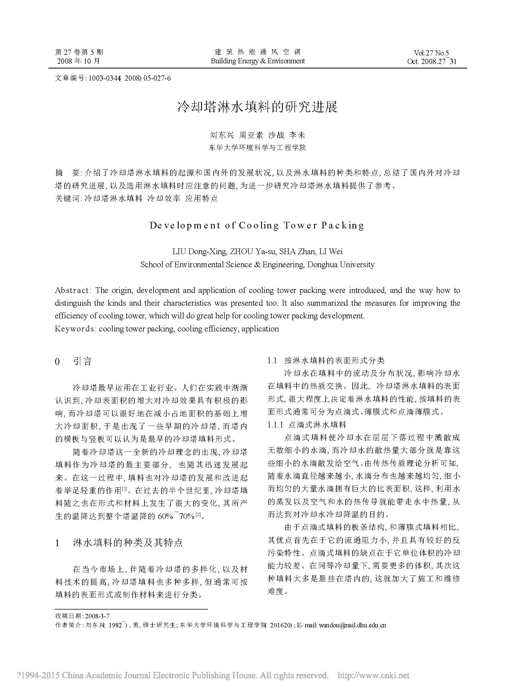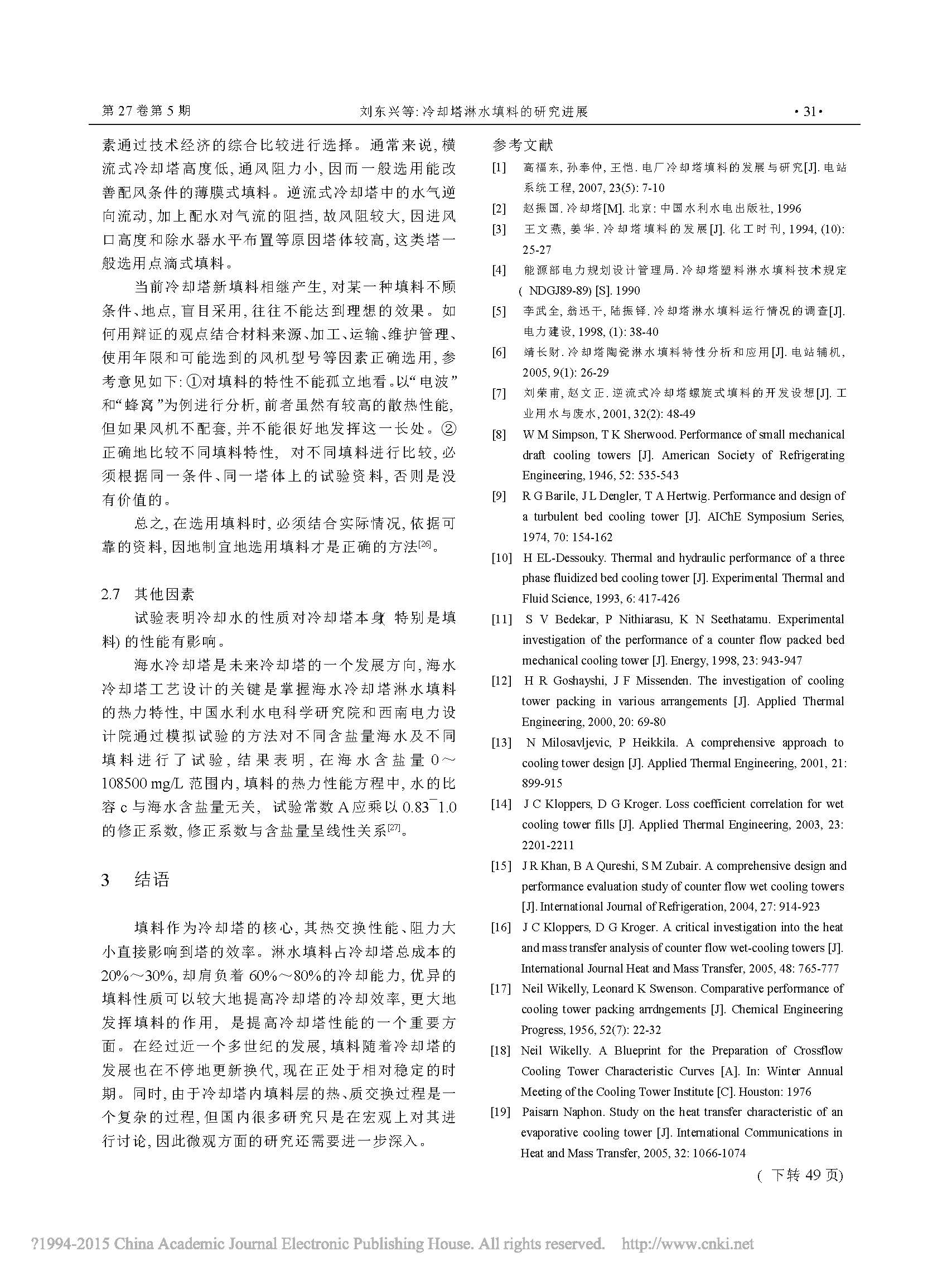 冷卻塔淋水填料的研究進展