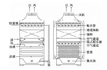 逆流閉式冷卻塔底部進冷風,與噴淋水逆向交替形成的濕熱空氣由頂部風機排出,水通過脫水器回集水槽從而達到循環使用,塔體內部空間大,散熱快,主要適用于溫度較低或溫差較小的流體冷卻。...